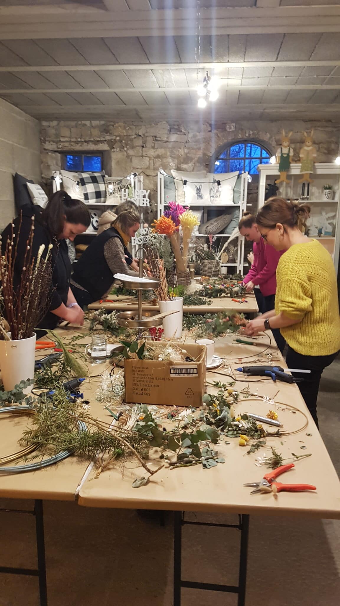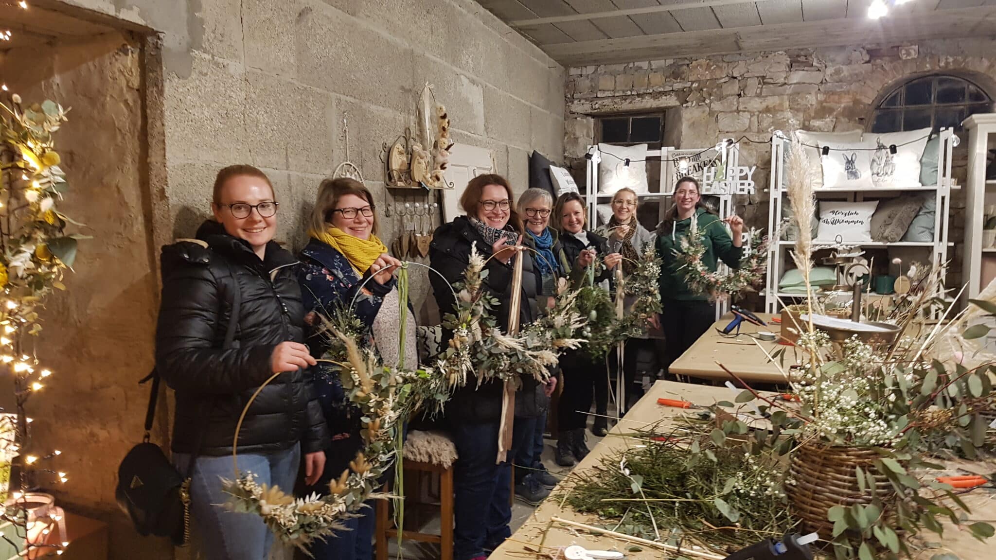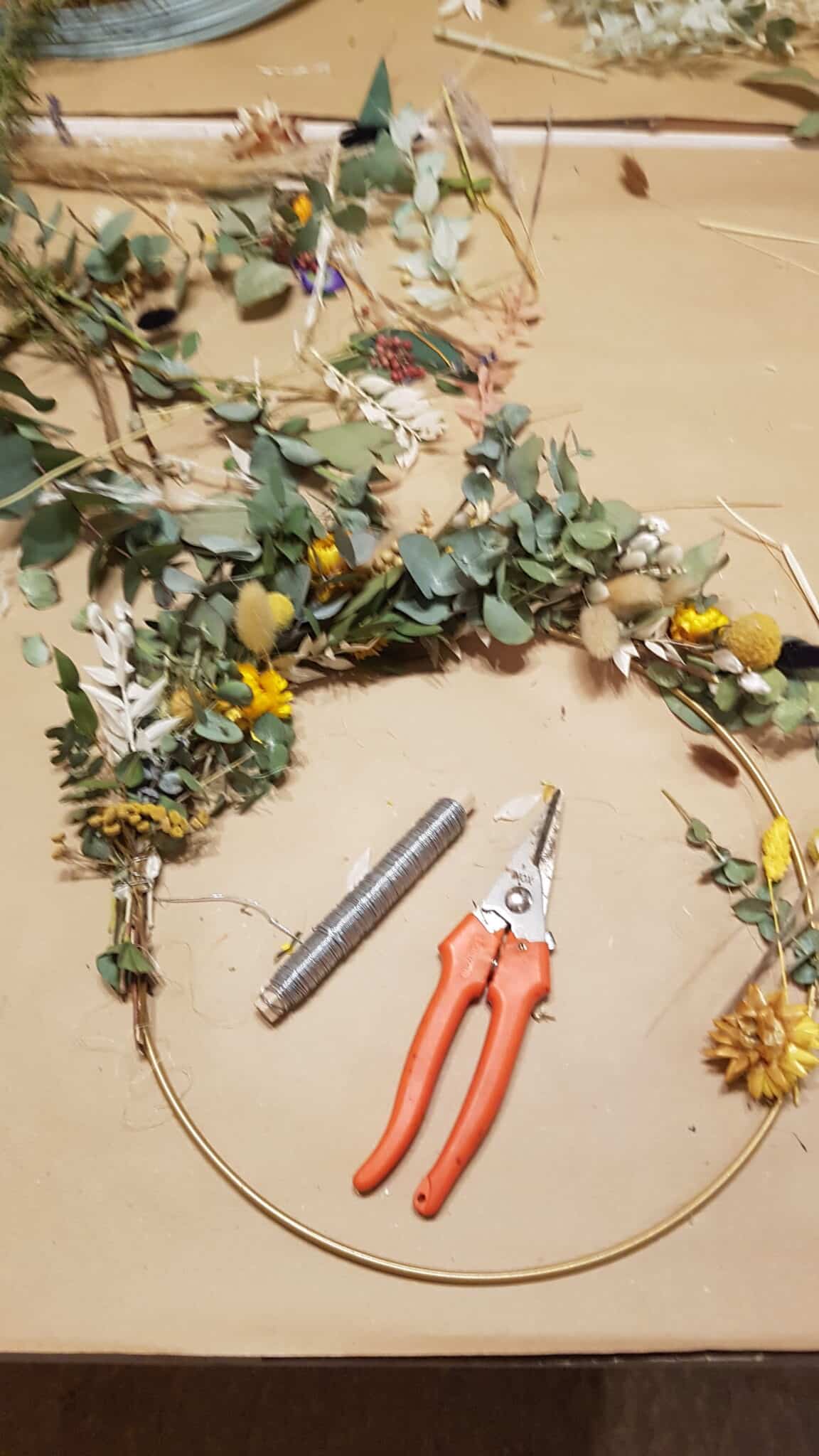 -Gemeinsames Binden und Einführung in die Kranzbindetechnik, sowie Vorstellung aller Materialien.